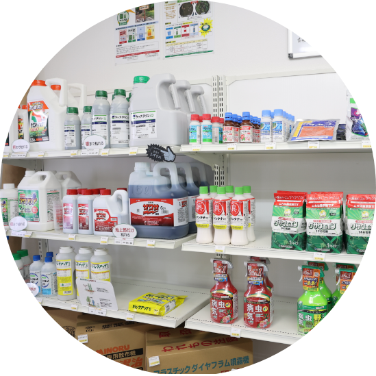 ビニールハウスで使用する資材や、イノシシ・シカなどの獣害から畑を守る電柵資材、防虫ネットや肥料農薬まで、幅広いラインナップを誇ります。